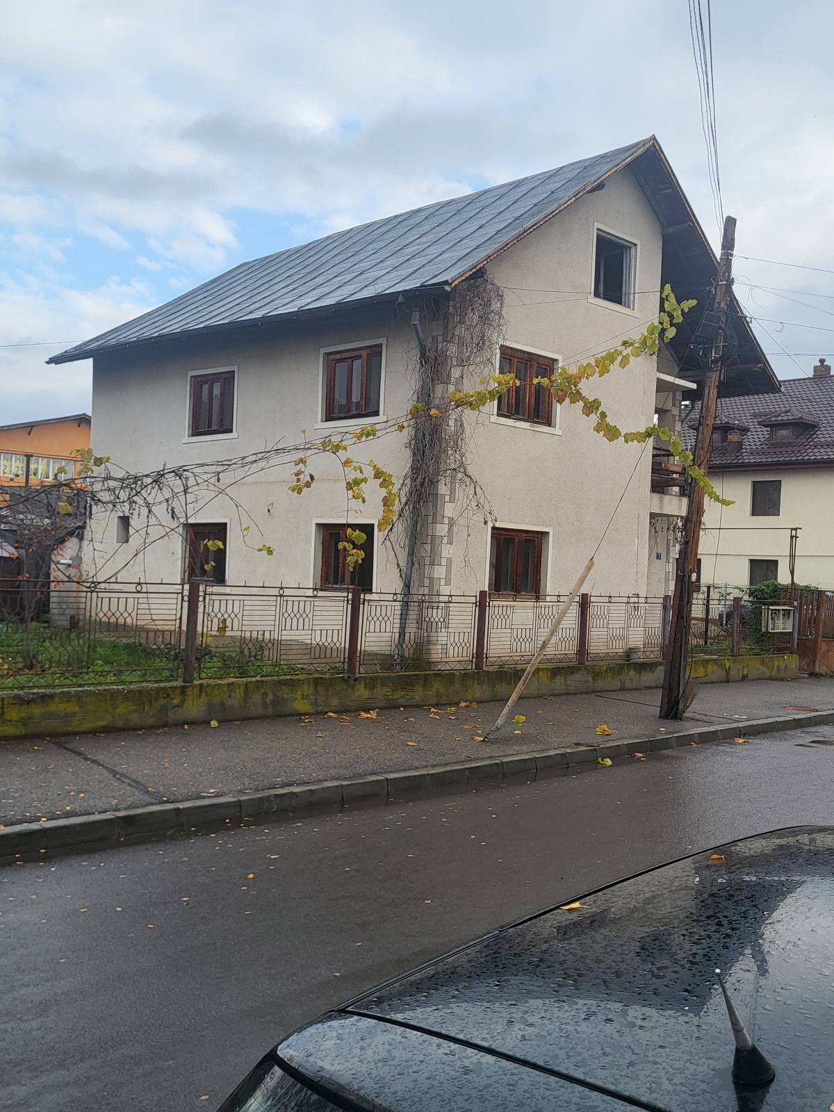 Pucioasa– casa constructie din caramida S+P+E, S- 1 camera, P- 3 camere, baie, bucatarie, hol, E- 2 camere, baie, bucatarie, hol, terasa, constructie 1980, teren 221mp, pret 110.000euro/neg